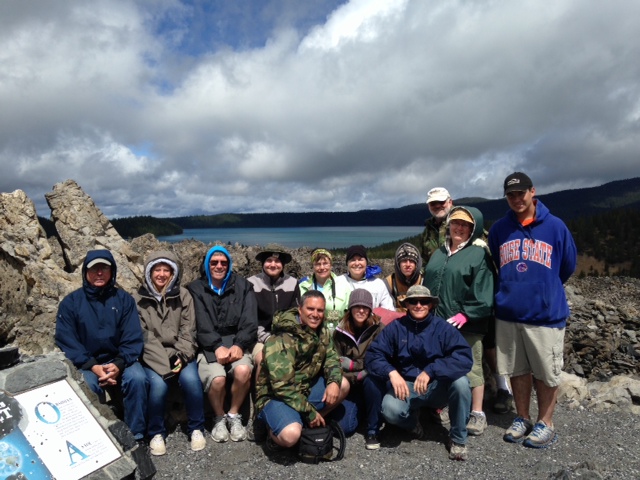 Part of the toughest Thingers braving the freezing rain and wind hiking atop the Big Obsidian Flow.